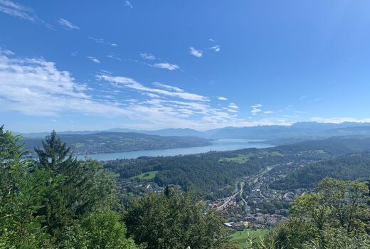 Weiter folgten wir dem Naturweg bis sich uns, aus dem Wald tretend, noch einmal eine grossartige Sicht auf den Zürichsee und die umliegenden Berge, zeigte. Gleich wurde angeregt darüber diskutiert, welche Gipfel wir den nun vor Augen hatten.