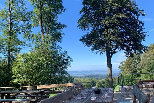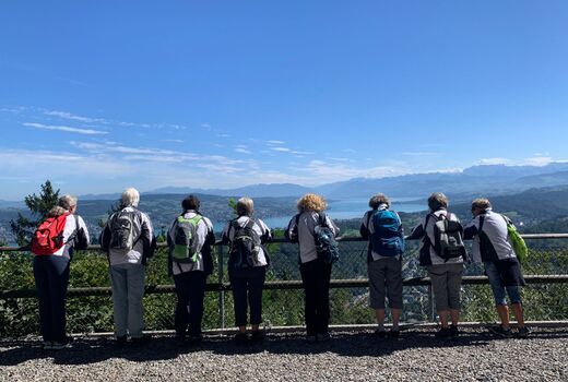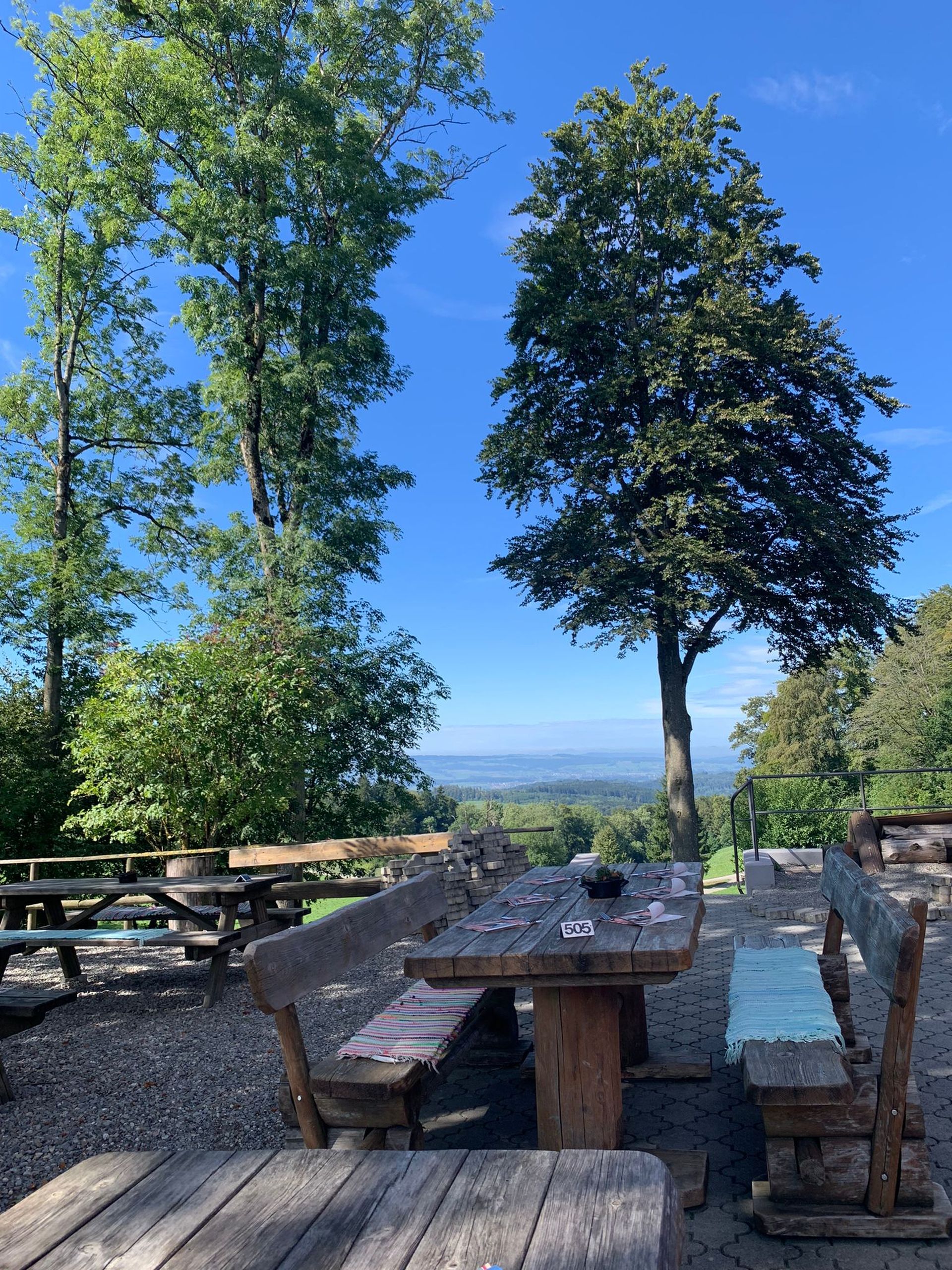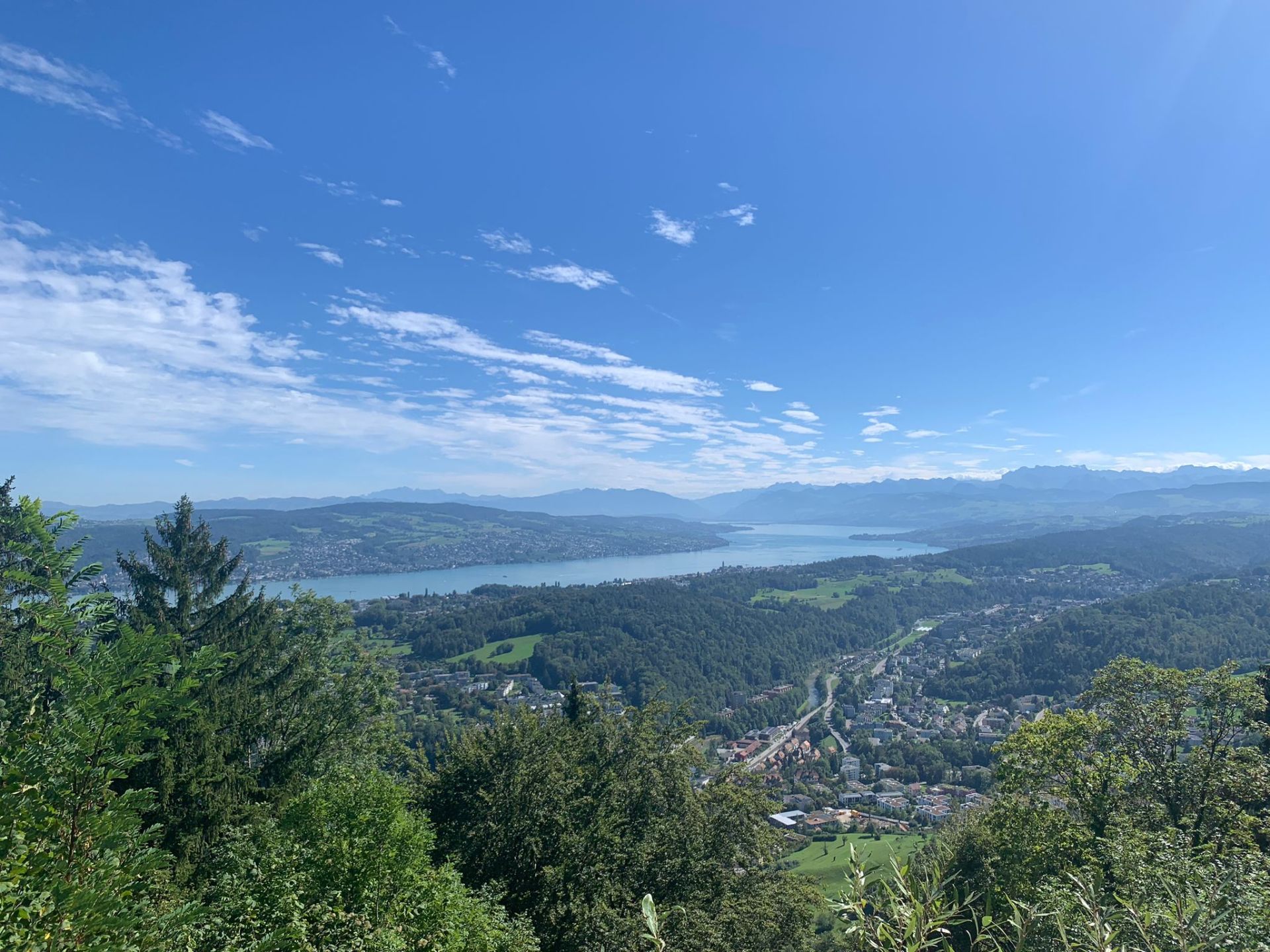 Nach der launigen Zugfahrt ging es nun mit der Sihltalbahn zur Station Uetliberg, von wo wir, gestärkt mit Kaffee und Gipfeli, unsere abwechslungsreise Wanderung begannen. Durch Wald und an Feldern vorbei, folgten wir dem Panoramaweg und genossen den traumhaften Ausblick auf Zürich und den Zürichsee. Auch beim Halt auf der Terrasse des Restaurants Felsenegg wurde uns, neben einem feinen Mittagsimbiss eine herrliche Fernsicht bei strahlendem Sonnenschein geboten.